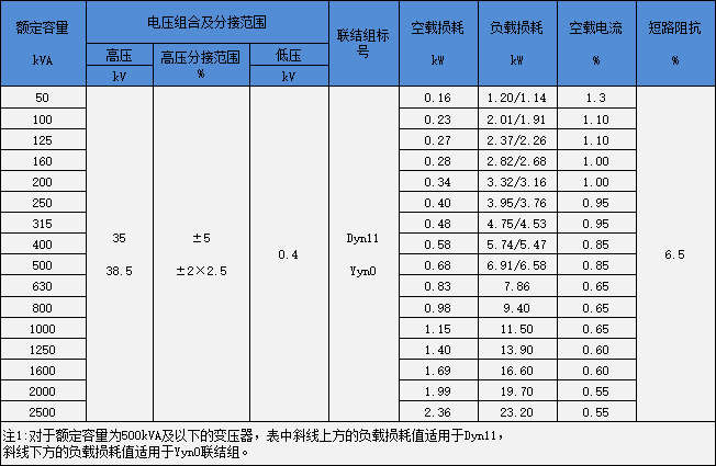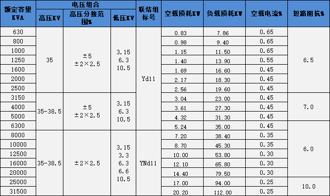 35kV級 11型三相雙繞組無勵磁調(diào)壓配電變壓器
