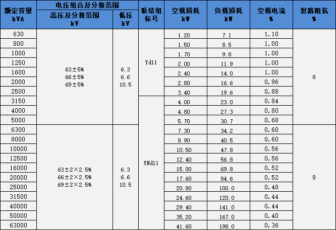 66kV級(jí) 11型三相雙繞組無勵(lì)磁調(diào)壓電力變壓器