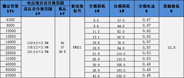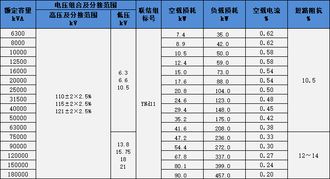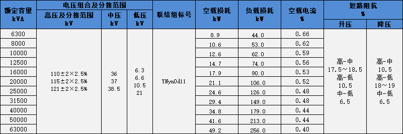 110kV級(jí) 11型三相雙繞組無(wú)勵(lì)磁調(diào)壓電力變壓器